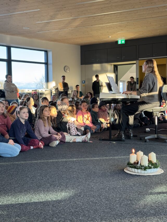 Mit viel Leidenschaft und Freude sangen die Kinder gemeinsam traditionelle und moderne Adventslieder. Am Klavier begleitet und geleitet wurden sie von Frau Westhäußer, die mit ihrem musikalischen Können und ihrer einfühlsamen Art für ein harmonisches Miteinander sorgte.