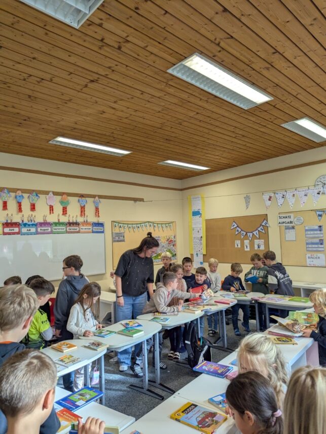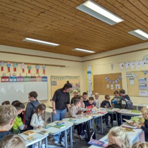Die Schülerinnen und Schüler waren eigenverantwortlich für Kauf und Verkauf zuständig. Mit viel Begeisterung wurden Bücher angeboten und neue Lieblingsgeschichten entdeckt. Das Angebot reichte von spannenden Abenteuern über lustige Tiergeschichten bis hin zu bunten Bilderbüchern – für jede Leserin und jeden Leser war etwas dabei.
