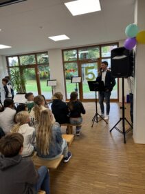 Selbstverständlich ließ es sich auch Rektor Herr Reichle nicht nehmen, die neuen Schülerinnen und Schüler herzlich zu begrüßen. In seiner Rede ermunterte er sie, offen, motiviert und wissbegierig in diesen neuen Lebensabschnitt zu starten und wünschte allen viel Erfolg und gutes Gelingen.