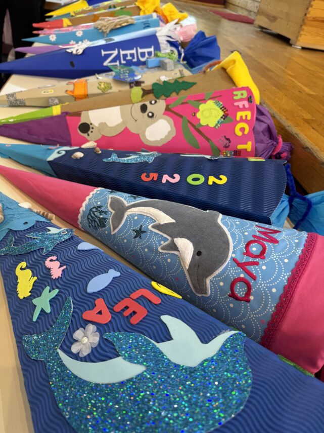 Im Zuge dessen richtete der Schulleiter Herr Reichle einige warme Worte an die neuen Schülerinnen und Schüler sowie an deren Familien. Dann kam der spannendste Moment des Tages: Die Erstklässler durften durch ein buntes Spalier aus Zweit-, Dritt- und Viertklässlern auf dem Pausenhof in ihre neuen Klassenzimmer einziehen. Dort lernten sie ihre Klassenlehrerinnen – Frau Hermann und Frau Schad – sowie Mitschüler kennen und machten die ersten Schritte in ihren neuen Schulalltag.
