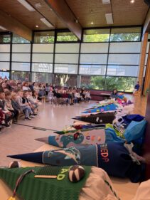 Der große Tag begann mit einem stimmungsvollen Gottesdienst, in dem die Kinder gemeinsam mit ihren Familien und Lehrkräften willkommen geheißen wurden. Mit ihren bunten Schultüten ging es danach voller Vorfreude in die Turnhalle, wo die Viertklässler ein kleines Theaterstück aufführten und so für viele strahlende Gesichter sorgten. Der traditionelle Segen für die Erstklässler, vorgetragen von Frau Märten, durfte nicht fehlen.